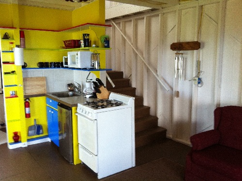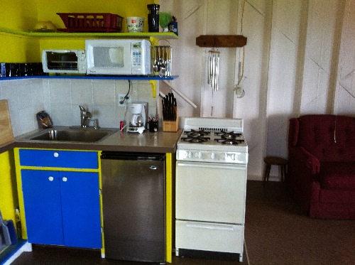 - Kitchenette with gas range, small fridge, microwave, toaster oven, coffe maker, blender, and gas grill just outside your door