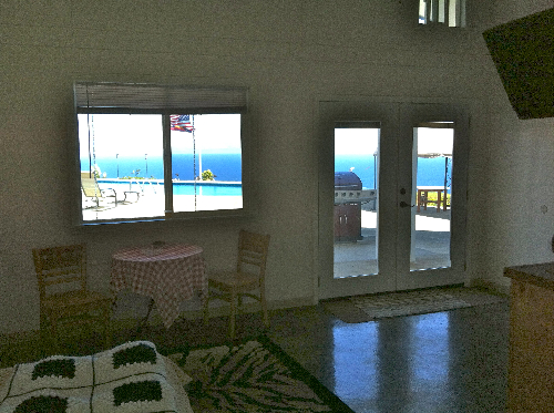 - Dining table inside and lanai sitting area