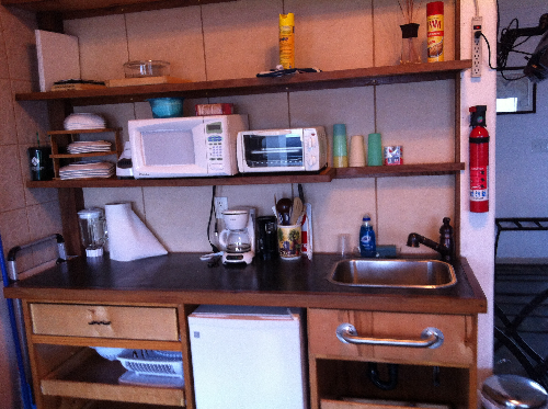 - Kitchenette with microwave, toaster oven, coffe maker, blender, and gas grill with side burner just outside your door
