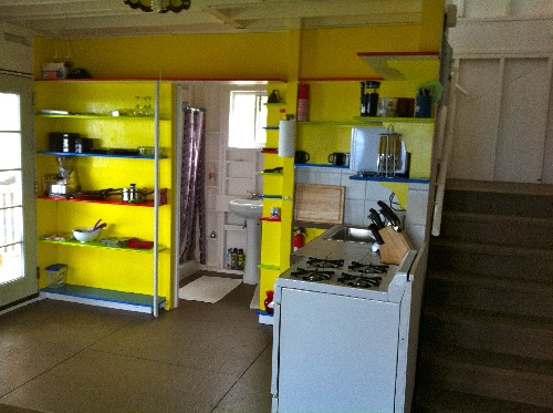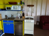 - Kitchenette with gas range, small fridge, microwave, toaster oven, coffe maker, blender, and gas grill just outside your door