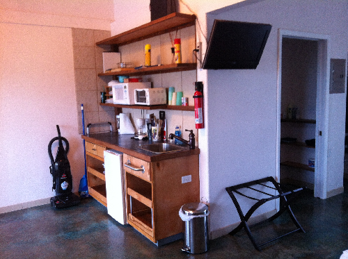 - Kitchenette with microwave, toaster oven, coffe maker, blender, and gas grill with side burner just outside your door